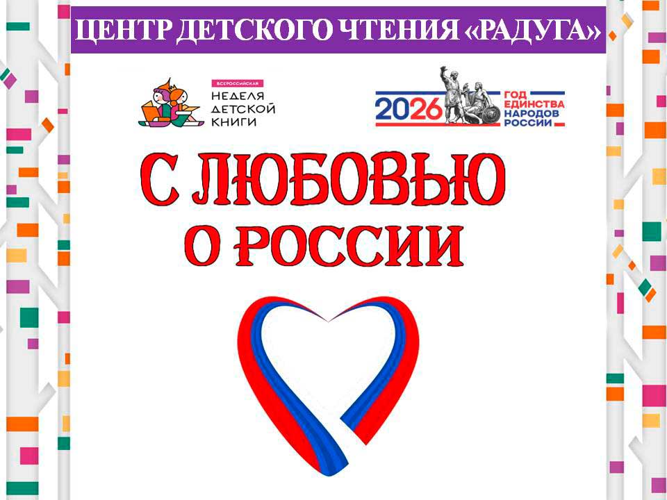 ![]() В Центре детского чтения «Радуга» в весенние каникулы с 30 марта по 5 апреля пройдет традиционная Неделя детской книги, посвященная Году единства народов России. Неделя детской книги – ежегодная ... Читать дальше » |