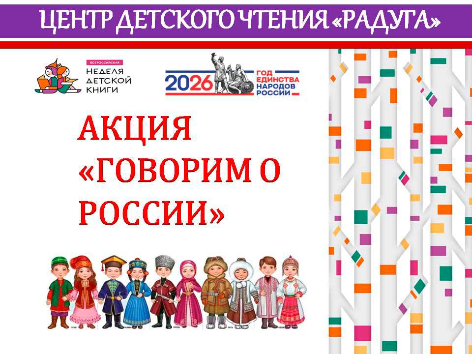 ![]() В первый день долгожданных весенних каникул активные читатели Центра детского чтения «Радуга» Удалых Савелий и Мира, Абаштамова Алена, в рамках Недели детской книги, провели на улицах города акцию «Говорим о России», посвященную Году единства народов России. ... Читать дальше » |